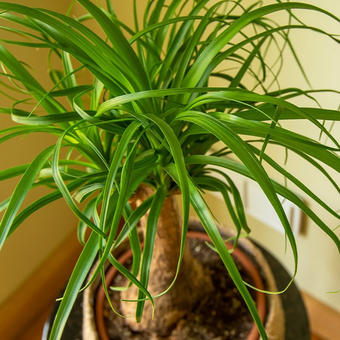Playful and quirky, the ponytail palm features a bulbous trunk that stores water and long, ribbon-like leaves that cascade like a green fountain. It's actually more succulent than palm, which means it's super low-maintenance and drought-tolerant. Its fun shape and pet-safe status make it a favorite for any playful household.