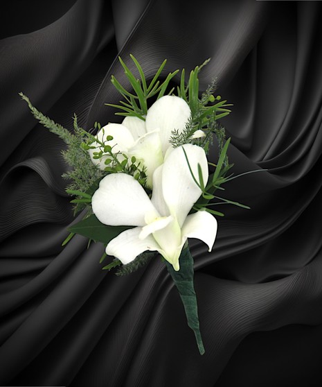 Dendrobium Orchids are a lovely, tropical style bloom. Available in white, variegated and the "Blue Bom" variety. Very light and airy in style, this boutonniere is very classy.
