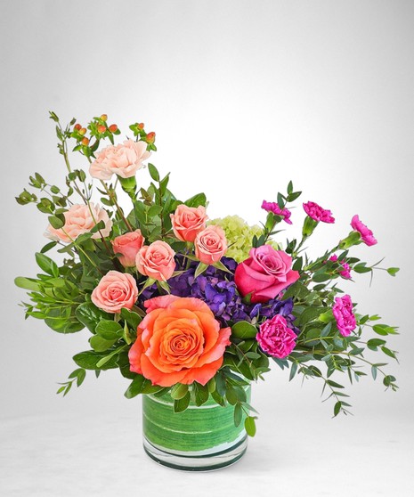 Prismatic Garden is the perfect birthday or romantic gift. Let us help make their day with this special flower design! If you want us to deliver flowers, but want something extraordinary, we suggest Prismatic Garden. It features beautiful roses, hydrangeas, carnations, and other premium foliage that will add a pop of color to any space.