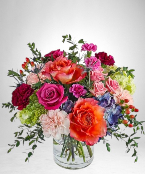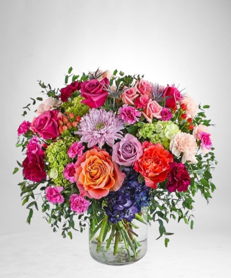 Prismatic Petal Party is a vibrant mix of roses, hydrangeas, carnations, and premium foliage designed to brighten any room. This colorful arrangement is a perfect choice for flower delivery when you want to celebrate a birthday, send encouragement, or surprise someone special. As your trusted local florist, we may substitute blooms based on availability while keeping the overall look and feel true to the design.