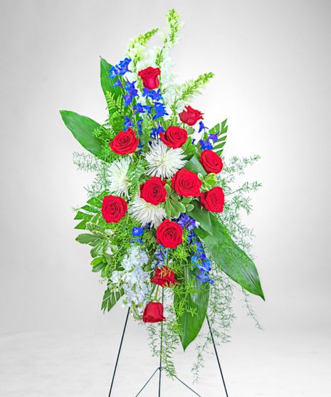 The best color flower for a funeral, memorial service, or expression of condolences, varies between people and between cultures. Traditionally in Western cultures, red roses at a funeral symbolize strength and dignity. White is also a popular color, symbolizing honor and peace. Of course, bright flowers and pastels are also appropriate. Blue flowers represent sadness, and purple flowers represent respect. We recommend you also consider honoring the deceased with arrangements made with their favorite flower varieties and favorite colors.